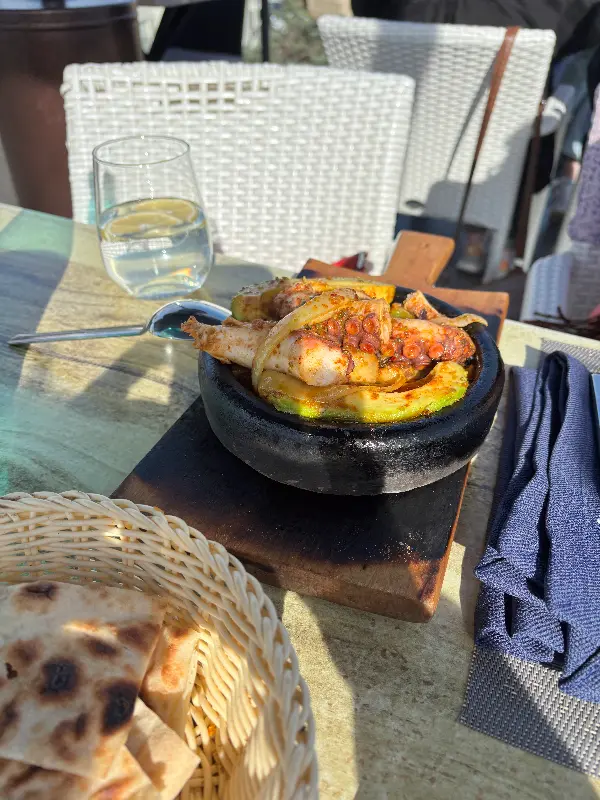 가장 먼저 나온 문어 샐러드는 신선한 해산물의 풍미가 그대로 느껴졌다. 쫄깃한 문어와 아삭한 채소의 조화는 훌륭했고, 상큼한 드레싱이 입맛을 돋우었다. 숭어는 부드러운 식감과 담백한 맛이 일품이었다. 겉은 바삭하고 속은 촉촉하게 구워진 생선 꼬치는 함께 제공된 소스와의 궁합이 환상적이었다.