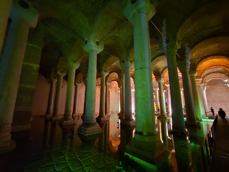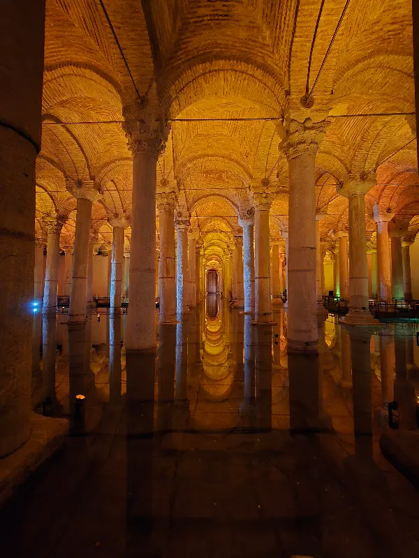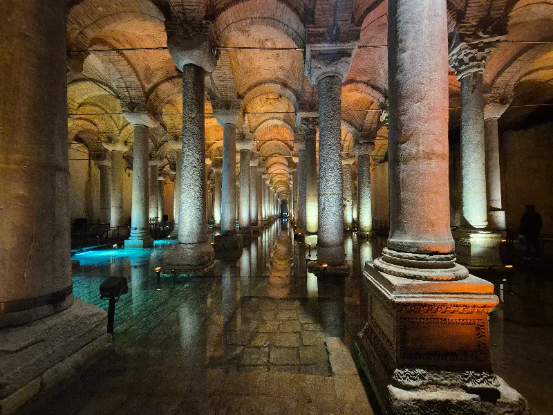 예라바탄 사라이, 튀르키예어로 ‘땅속에 잠긴 궁전’이라는 뜻을 가진 바실리카 시스턴은 그 이름만큼이나 신비로운 매력을 간직한 곳입니다. 동로마 제국 시대에 건설된 이 지하 저수조는, 마치 다른 세계로 통하는 문과 같습니다. 인터넷에서 미리 티켓을 예매하고 다음날 아침, 설레는 마음으로 바실리카 시스턴으로 향했습니다.
