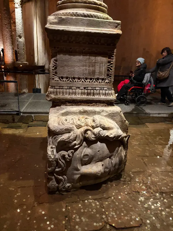 메두사 머리 기둥 주변은 특히 인기가 많아 사진을 찍기 위한 사람들로 붐볐습니다. 메두사 조각상 조명 그림자도 놓치지 마세요.
