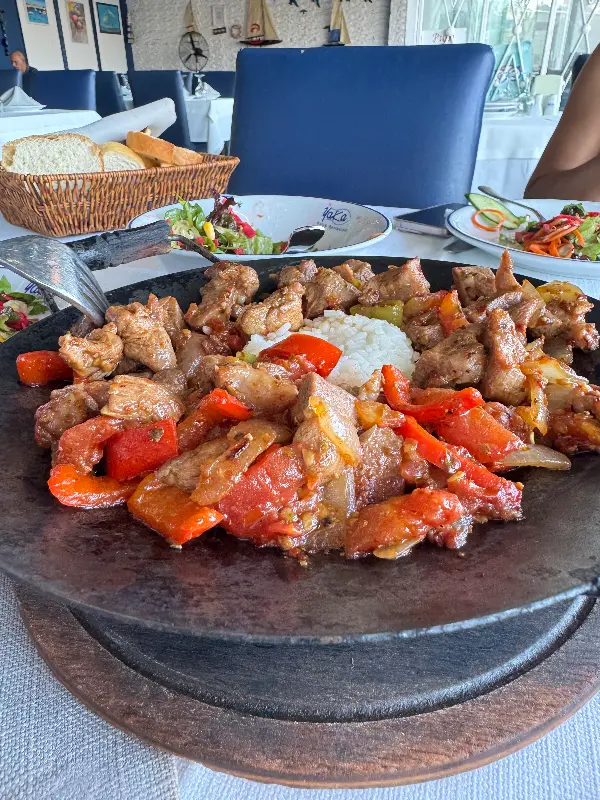 야카 발릭의 가장 큰 매력은 단연 신선한 해산물 요리입니다. 메뉴판을 가득 채운 다양한 생선 요리들은, 그날 갓 잡아 올린 듯 싱싱함을 자랑했습니다. 약혼녀와 함께 생선과 빵을 주문했는데, 한 입 베어 무는 순간 입 안 가득 퍼지는 풍미는 감동 그 자체였습니다. 신선한 재료 본연의 맛을 살린 담백한 조리법은, 해산물의 신선함을 더욱 돋보이게 했습니다.