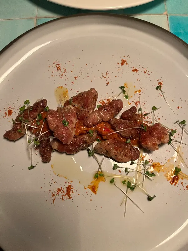 특히 숙성 정어리 요리는 인생 최고의 음식 중 하나였다. 입 안에서 사르르 녹아내리는 듯한 식감과 풍부한 풍미는 잊을 수 없는 경험이었다. 소고기를 먹지 못하는 나를 위해 양고기로 대체해주는 배려 또한 감동적이었다. 넉넉하게 제공되는 와인 또한 음식의 풍미를 더욱 깊게 만들어주었다.