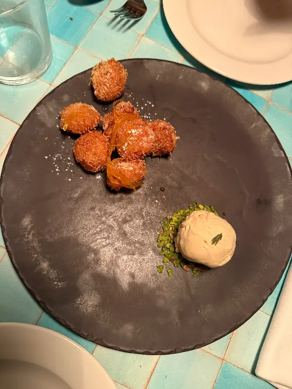 특히 기억에 남는 것은 동그란 모양의 디저트였다. 겉은 바삭하고 속은 촉촉한 식감, 그리고 달콤하면서도 상큼한 맛이 완벽하게 어우러져 입안 가득 행복을 선사했다.