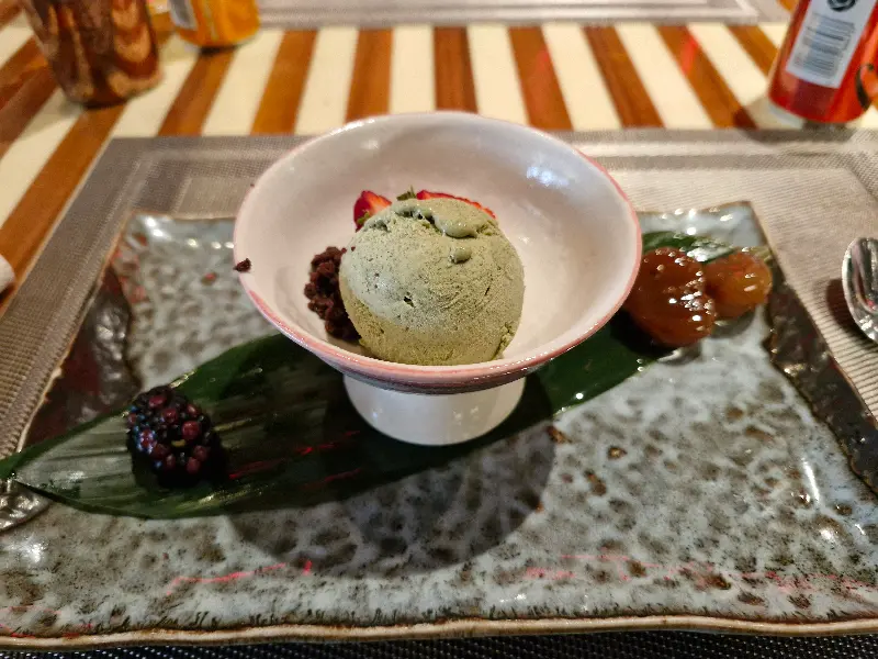 식사를 마치고 디저트로 말차 아이스크림을 주문했다. 녹차의 쌉쌀한 맛과 달콤한 아이스크림의 조화는 입 안을 깔끔하게 마무리해주는 완벽한 선택이었다.