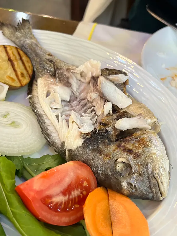 계속 고기를 먹었더니 해산물이 먹고 싶어서 방문했는데, 농어구이는 정말 최고의 선택이었다. 아내는 토마토 필레를 시켰는데, 나는 농어구이 먹느라 정신이 없었다. 그만큼 농어구이는 훌륭한 맛을 자랑했다.