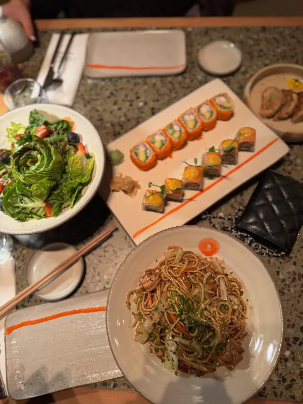 샐러드와 롤, 면 요리까지, 아름다운 플레이팅이 돋보이는 이오키 나우의 음식들.