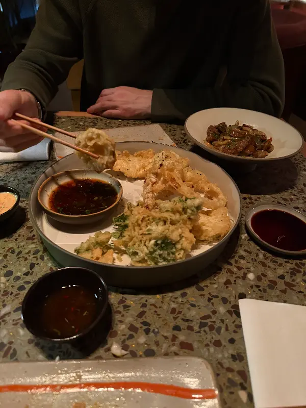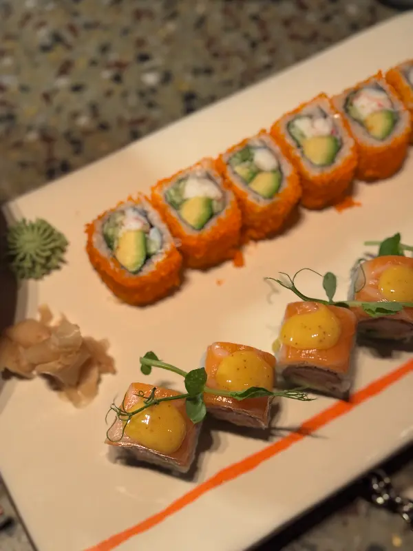 이오키 나우의 음식은 단순히 맛있는 것을 넘어, 시각적인 아름다움까지 고려한 예술 작품과 같습니다. 싱싱한 재료 본연의 색감과 질감을 살린 플레이팅은 감탄을 자아냅니다. 치즈 스시롤과 쉬림프 템프라의 조화로운 색감은 식욕을 돋우고, 섬세한 장식은 음식을 더욱 특별하게 만들어줍니다. 젓가락을 들기 전, 잠시 감상하는 시간을 가졌습니다.