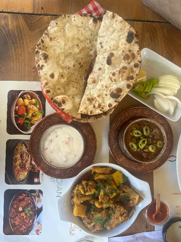 문을 열자마자 코를 간지럽히는 이국적인 향신료 냄새가 후각을 자극했다. 인도에 와 있는 듯한 착각을 불러일으키는 묘한 향기였다. 은은한 조명 아래, 테이블마다 놓인 작은 촛불이 아늑한 분위기를 더했다. 벽에는 인도 전통 문양이 새겨진 장식품들이 걸려 있었고, 잔잔한 인도 음악이 흐르고 있었다.
