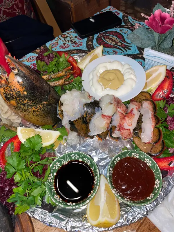 이어서 랍스터 요리가 나왔다. 윤기가 흐르는 랍스터 살은 보는 것만으로도 군침이 돌았다. 포크로 살을 조심스럽게 발라내어 입에 넣으니, 부드러운 식감과 함께 달콤한 맛이 느껴졌다. 신선한 해산물을 맛보는 순간, 이곳이 왜 이스탄불에서 유명한 해산물 맛집인지 알 수 있었다.