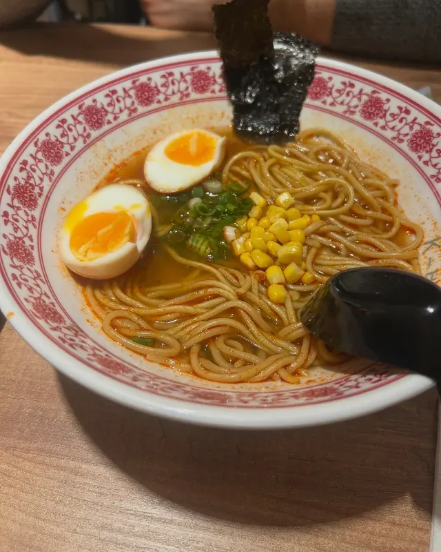 야끼소바를 정신없이 먹고 나니, 따뜻한 국물이 생각났다. 그래서 미소라멘을 추가로 주문했다. 김이 모락모락 나는 미소라멘이 테이블 위에 놓이자, 구수한 향이 은은하게 퍼져 나갔다.