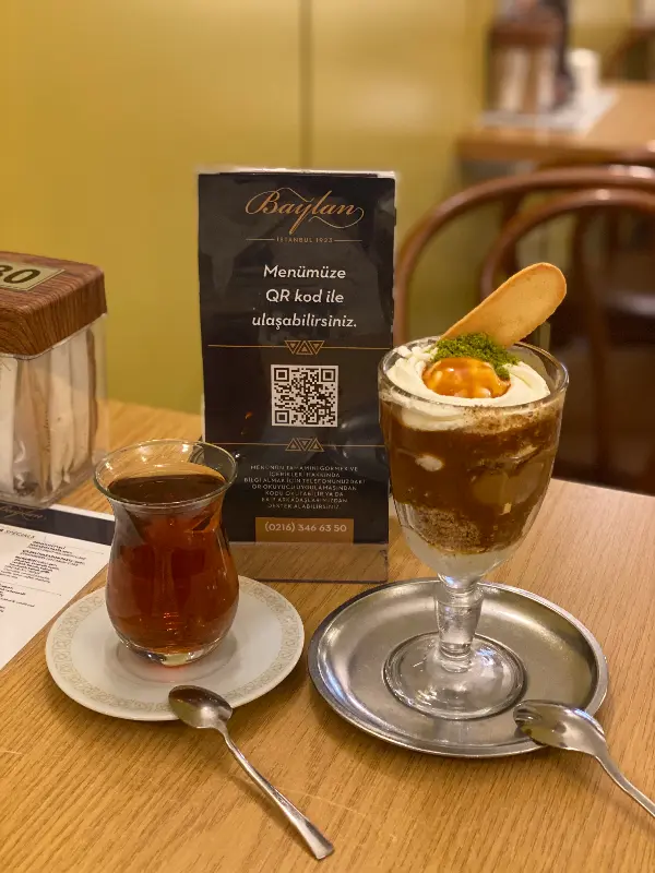 터키 친구의 손에 이끌려 도착한 곳은, 낡은 듯하면서도 정겨운 분위기가 감도는 ‘바일란(Baylan)’ 카페였다. 무심하게 지나치기만 했던 그곳이, 이스탄불에서는 꽤나 유명한 디저트 명가였다니! 세월의 흔적이 느껴지는 간판과 고풍스러운 인테리어는, 마치 시간 여행을 떠나온 듯한 기분을 선사했다.