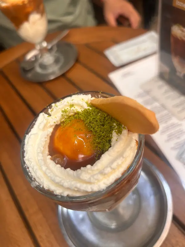 한 입 맛보는 순간, 입 안 가득 퍼지는 달콤함에 절로 미소가 지어졌다. 부드러운 아이스크림과 쫀득한 카라멜, 그리고 바삭한 크런치가 환상적인 조화를 이루었다. 특히 카라멜 소스의 깊고 진한 풍미는 ‘쿠프 그리예’의 매력을 한층 더 끌어올렸다. 단 것을 좋아하는 사람이라면 분명히 만족할 만한 맛이었다.