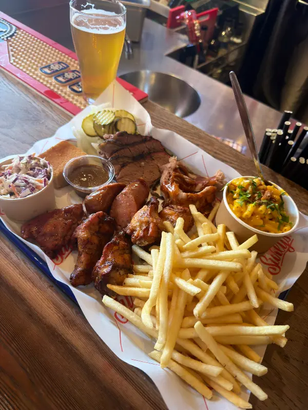 브리스킷, 풀드 포크, 립, 치킨 윙 등 다양한 종류의 고기를 한 번에 즐길 수 있는 바비큐 플래터는 만족스러운 선택이었습니다.