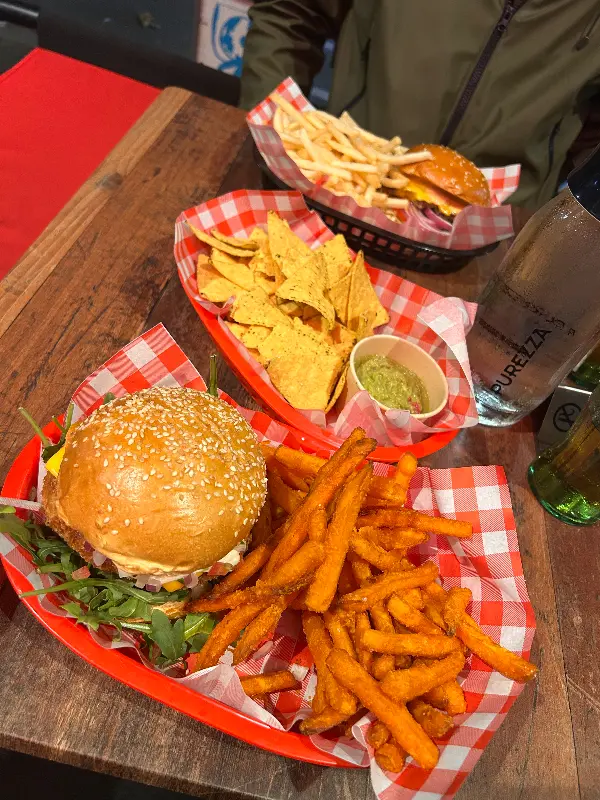 Surly’s는 채식주의자를 위한 메뉴도 준비되어 있습니다. 제 아내는 고구마 패티가 들어간 앨라배마 버거를 주문했는데, 정말 맛있었다고 합니다. 남편은 고기 버거를 주문했는데, 역시나 만족스러워했습니다. 앨라배마 버거는 고구마 패티의 달콤함과 앨라배마 소스의 매콤함이 어우러져 독특한 풍미를 자아냅니다. 곁들여 나오는 감자튀김도 양이 푸짐하고 바삭해서 좋았습니다.