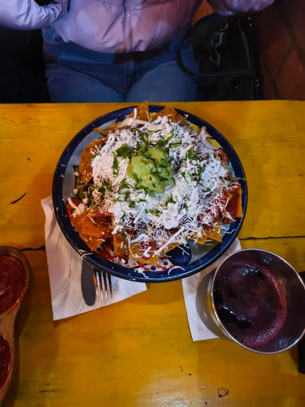 주문 후, 잠시 기다리는 동안 무제한으로 제공되는 자메이카 생수를 맛보았다. 은은한 단맛과 향긋한 풍미가 입안을 가득 채웠다. 드디어 기다리던 음식이 하나둘씩 나오기 시작했다. 가장 먼저 눈에 띈 것은 푸짐한 양의 나초였다. 바삭한 나초 위에 듬뿍 올려진 과카몰레, 사워크림, 치즈는 환상적인 조화를 이루었다.