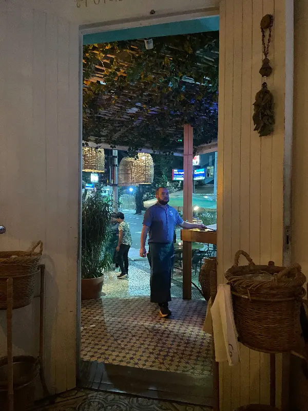 레스토랑에 들어서자마자 란(Luan)이라는 직원의 따뜻한 미소가 저를 맞이했습니다. 첫인상부터 기분이 좋아지는 곳이었죠. 처음에는 실내 테이블이 만석이었지만, 란은 곧 자리를 마련해주었고, 그의 친절함 덕분에 기다리는 시간조차 즐거웠습니다. 작은 공간이지만, 불편함 없이 편안하게 시간을 보낼 수 있도록 배려하는 모습이 인상적이었습니다.