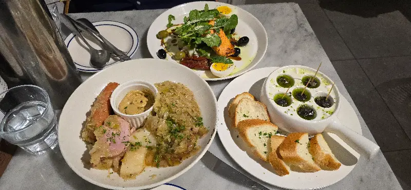 음식은 생각보다 빠르게 나왔다. 가장 먼저 눈에 들어온 것은 비프 부르기뇽. 깊고 진한 색깔의 스튜가 따뜻한 김을 내뿜고 있었다. 한 입 맛보니, 부드럽게 익은 소고기와 풍부한 와인 향이 입안 가득 퍼져 나갔다. 마치 프랑스 유학 시절, 현지에서 먹던 스튜의 맛과 똑같았다. 오랜만에 느껴보는 향수에 젖어 잠시 추억에 잠겼다.