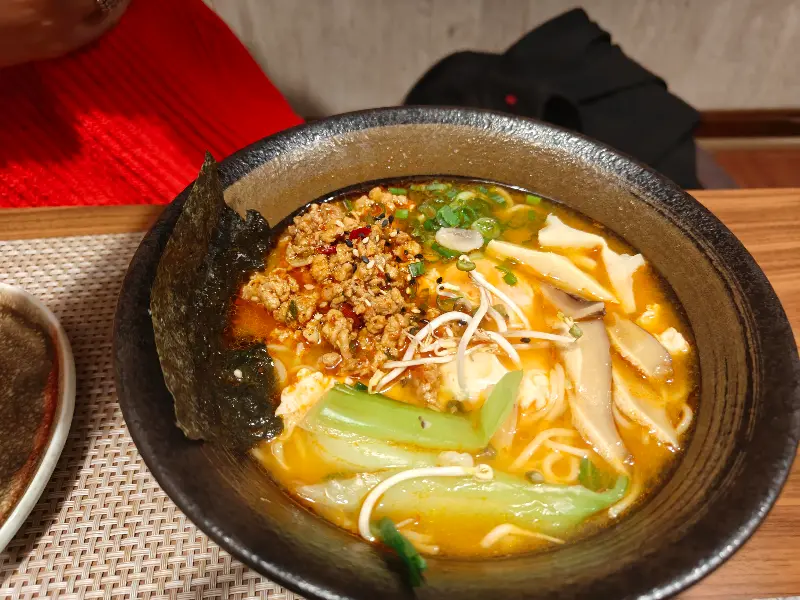 보기만 해도 속이 따뜻해지는 미소 라멘. 진한 국물과 푸짐한 토핑이 입맛을 돋우는 매력적인 메뉴입니다.