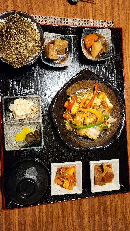 레스토랑 입구에 들어서자, 밖의 풍경과는 완전히 다른 차분하고 아늑한 분위기가 느껴집니다. 나무 소재를 사용한 인테리어와 은은한 조명이 마음을 편안하게 만들어줍니다. 마치 일본의 작은 골목길에 숨겨진 듯한 레스토랑을 발견한 기분이랄까요?