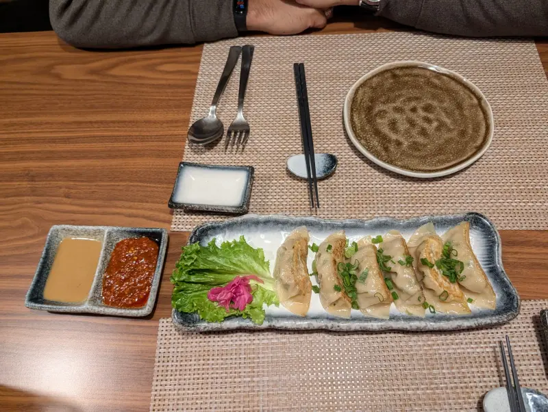 미소 라멘과 함께 코가이의 인기 메뉴인 교자도 주문했습니다. 사실, 이곳을 방문하기 전에 다른 사람들의 후기를 읽어보니, 교자를 극찬하는 글들이 많았습니다. 특히, 한 방문객은 교자를 네 번이나 시켜 먹었다는 이야기에 더욱 기대감이 커졌습니다.