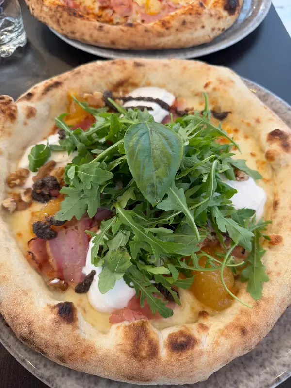 신선한 리코타 치즈, 햄, 바질, 호두, 오렌지 잼, 트러플 크림 등 다양한 재료가 조화롭게 어우러진 Maradona Napoli 피자는 한 입 베어 무는 순간, 입안에서 다채로운 풍미가 폭발합니다. 신선한 재료환상적인 조합은 왜 이 피자가 수많은 상을 받았는지 단번에 이해하게 합니다.