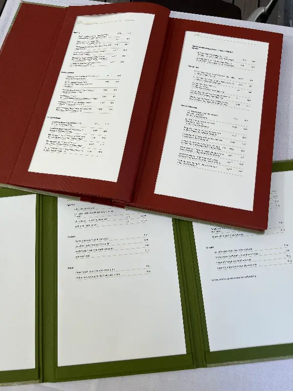 메뉴판을 펼쳐 들면, 마치 예술 작품을 감상하는 듯한 기분이 듭니다. 붉은색과 녹색의 조화가 돋보이는 메뉴판은 시각적인 즐거움을 선사하며, 섬세하게 적힌 메뉴 설명은 어떤 요리가 나올지 기대감을 높입니다. 채식, 생선, 육류 요리 등 다양한 선택지를 제공하여 모든 방문객이 만족할 수 있도록 배려한 점이 돋보입니다.