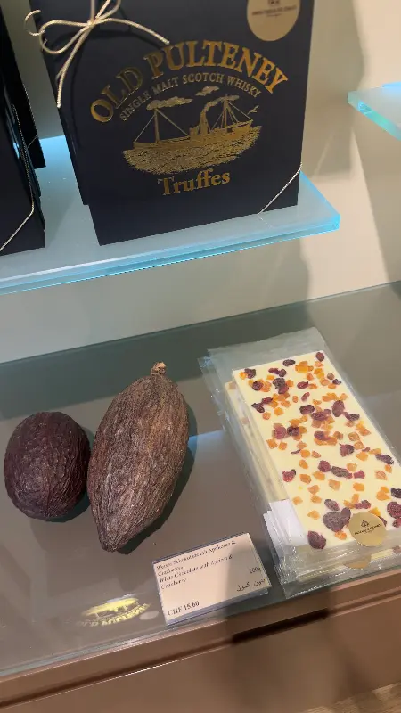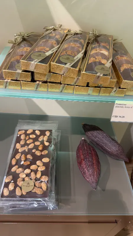 공원에서 산책을 즐기다가 스위스 초콜릿 샬레에 들러 핫초코 한 잔을 마시는 것은 스위스 여행의 잊지 못할 추억이 될 것입니다. 매장 내에는 다양한 종류의 초콜릿뿐만 아니라, 초콜릿의 원료인 카카오 열매도 전시되어 있어 흥미로운 볼거리를 제공합니다.
