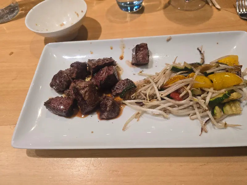 고급 일식 레스토랑답게, 이곳의 와규는 정말 훌륭했습니다. 겉은 바삭하고 속은 촉촉하게 구워진 와규는 입안에서 부드럽게 녹아내렸고, 풍부한 육즙과 고소한 풍미는 잊을 수 없는 맛을 선사했습니다. 섬세한 칼집 덕분에 더욱 부드러운 식감을 느낄 수 있었고, 은은한 불향은 와규의 풍미를 한층 더 깊게 만들어 주었습니다.