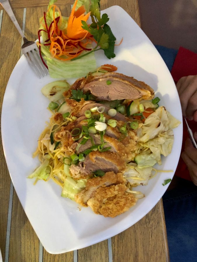 메인 코스로는 파인애플을 곁들인 바삭한 소고기를 선택했다. 달콤한 파인애플 향과 고소한 소고기 냄새가 식욕을 자극했다. 접시 위에 놓인 음식은 눈으로도 즐거움을 선사했다. 윤기가 흐르는 소고기와 노란 파인애플, 알록달록한 야채들이 조화롭게 어우러진 모습은 마치 예술 작품 같았다.