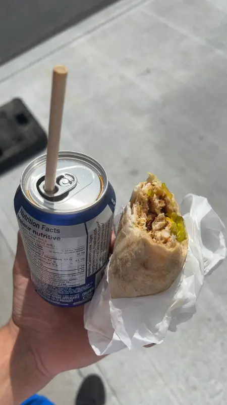 Good to Go의 가장 큰 매력 중 하나는 매일 바뀌는 오늘의 특선 메뉴다. 오늘은 어떤 특별한 요리가 나를 기다리고 있을까? 기대하는 마음으로 메뉴판을 훑어본다. 샤와르마, 치킨, 양념 감자, 밥 등 다채로운 조합이 눈길을 사로잡는다. 특히, 이곳의 샤와르마는 MTL에서 최고라는 칭찬이 자자하다. 망설임 없이 오늘의 특선 메뉴를 주문했다.