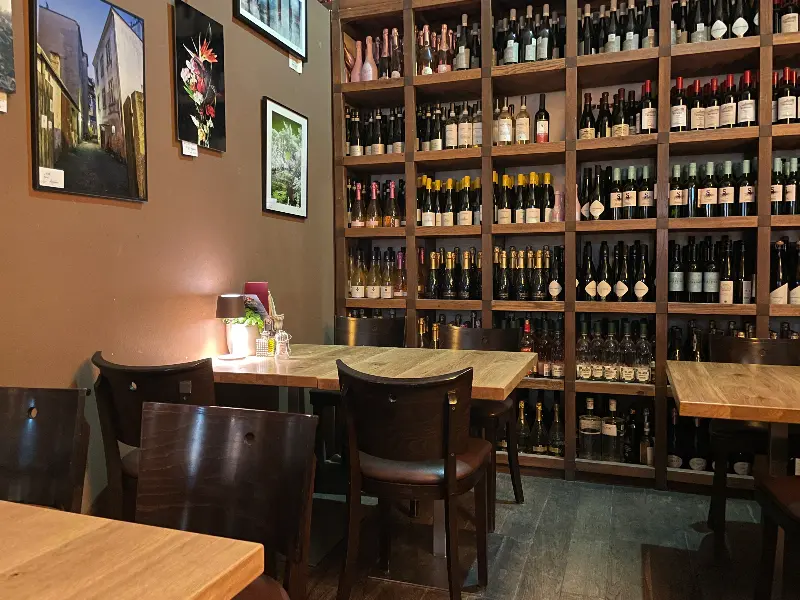 레스토랑 내부, 앤티크한 분위기와 와인 저장고가 인상적이다.