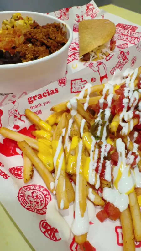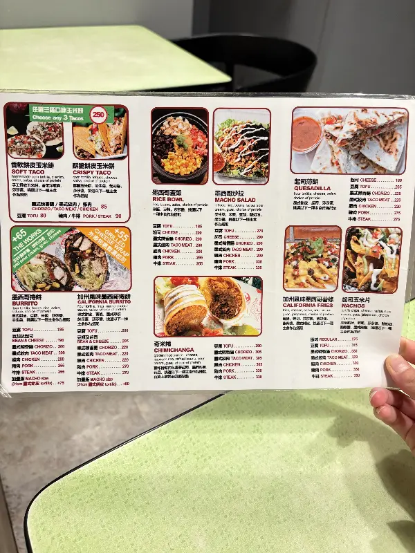 가게 문을 열자, 경쾌한 음악과 활기찬 분위기가 나를 맞이했다. 깔끔하면서도 개성 넘치는 인테리어는 패스트푸드점이라는 인상을 잊게 할 만큼 매력적이었다. 메뉴판을 정독한 끝에, 타코와 치미창가를 주문했다. 저렴한 가격에 기대감이 더욱 높아졌다.