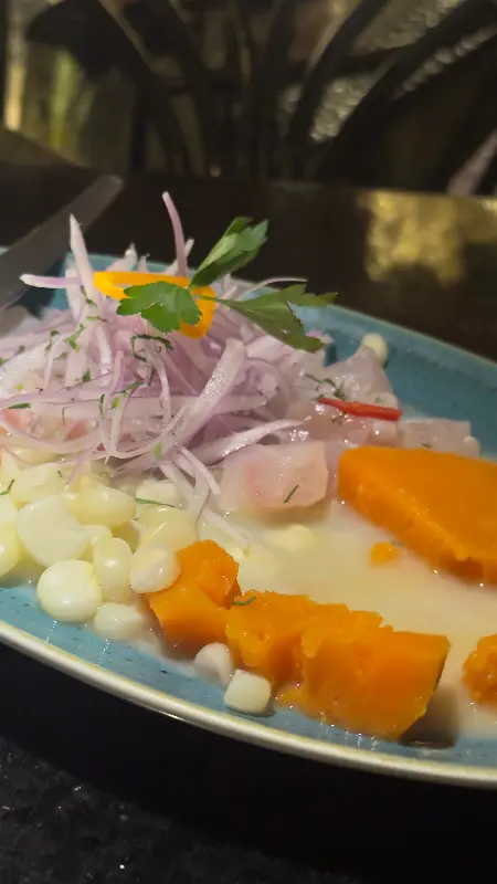 신선한 해산물과 채소의 조화가 일품인 세비체. 상큼하면서도 매콤한 맛이 입맛을 돋우는 매력적인 요리입니다.