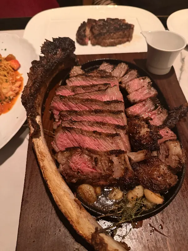 잠시 후, 눈 앞에 펼쳐진 토마호크 스테이크는 그 웅장한 자태에 감탄을 금치 못하게 했다. 윤기가 흐르는 표면과 붉은 속살은 완벽한 조화를 이루었고, 코를 찌르는 풍부한 육향은 식욕을 자극했다. 한 입 크기로 잘라 입에 넣는 순간, 입 안 가득 퍼지는 육즙과 풍미는 그야말로 황홀경이었다. 겉은 바삭하고 속은 촉촉한 완벽한 굽기, 씹을수록 느껴지는 깊은 풍미는 왜 이곳이 서울 최고의 스테이크 맛집으로 불리는지 단번에 이해하게 만들었다.