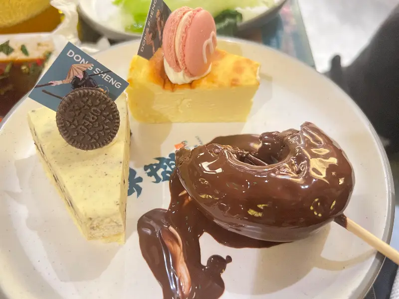 동성 그릴 뷔페의 매력은 고기뿐만이 아니었다. 튀김, 사시미, 피자, 디저트, 과일 등 100가지가 넘는 다양한 음식들이 준비되어 있었다. 갓 튀겨져 나온 따끈한 튀김은 겉은 바삭하고 속은 촉촉했으며, 신선한 사시미는 입안에서 살살 녹았다.