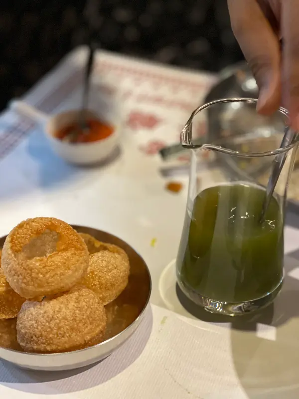 식사를 마치면 독특한 민트 물이 제공됩니다. 처음 맛보는 사람에게는 다소 낯설 수 있지만, 인도에서는 흔하게 마시는 음료라고 합니다. 향긋한 민트 향이 입안을 개운하게 해주고, 소화를 돕는 효과도 있다고 하니 꼭 한번 경험해 보세요. 물론, 개인 취향에 따라 호불호가 갈릴 수 있습니다.