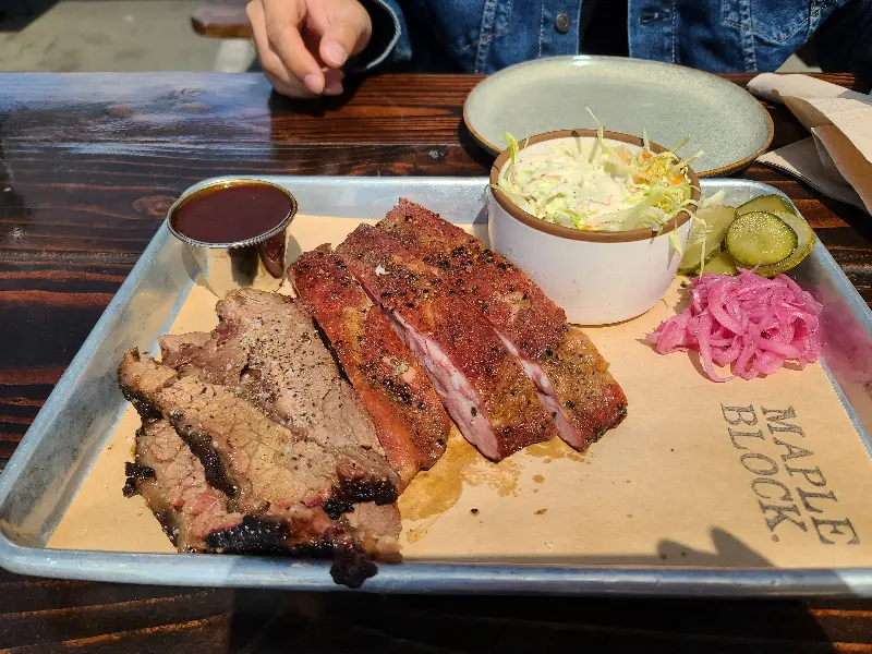 메이플 블록 바비큐에서 맛보는 행복한 한 끼 식사.