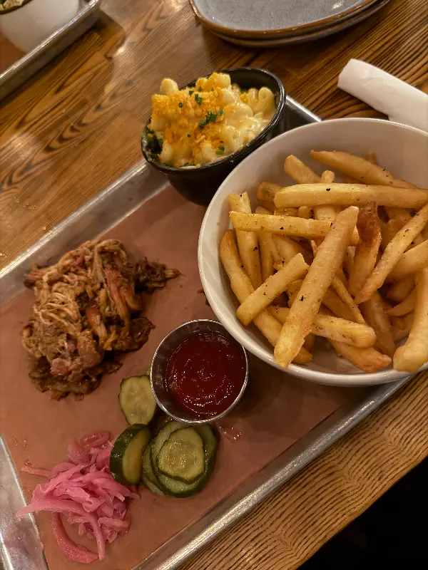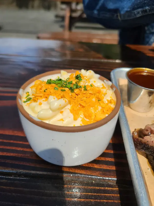 립과 함께 플래터에 담겨 나온 맥앤치즈 또한 훌륭했습니다. 겉은 바삭하고 속은 촉촉한 맥앤치즈는 고소하면서도 깊은 풍미를 자랑했습니다. 느끼함 없이 깔끔한 맛은 립과 환상적인 조화를 이루며 입 안을 즐겁게 했습니다.