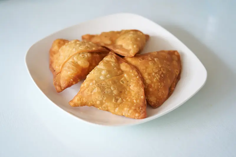 사모사의 겉은 바삭하고 속은 촉촉하며, 알맞게 양념이 배어 있다.