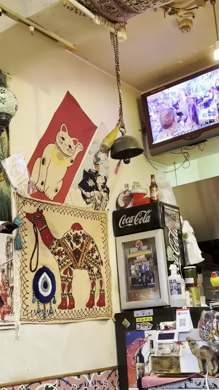가게 안으로 들어서자마자 눈에 띈 것은 중동 특유의 소품과 화려한 벽 장식이었다. 마치 다른 세계에 온 듯한 기분이랄까. 천장에는 터키 램프가 은은하게 빛나고 있었고, 벽에는 나자르 본주(악마의 눈) 부적이 걸려 있었다. 이국적인 분위기에 압도당하며 자리에 앉으니, 친절한 사장님께서 우리를 맞이해주셨다.