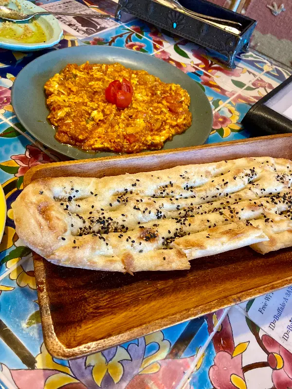 미르자 가세미와 함께 제공되는 빵. 빵 위에 얹어 먹으면 환상의 조합을 자랑한다.