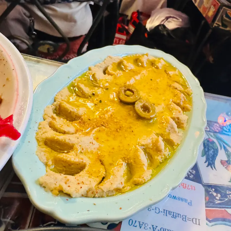 친구는 후무스를 주문했는데, 쫄깃한 빵과 함께 먹으니 정말 맛있다고 했다. 후무스는 병아리콩을 삶아 으깬 후, 타히니(참깨 페이스트), 레몬즙, 마늘, 올리브 오일 등을 넣어 만든 중동 지역의 대표적인 음식이다. 담백하면서도 고소한 맛이 일품인 후무스는 빵 뿐만 아니라 다양한 요리와도 잘 어울린다.