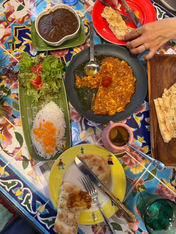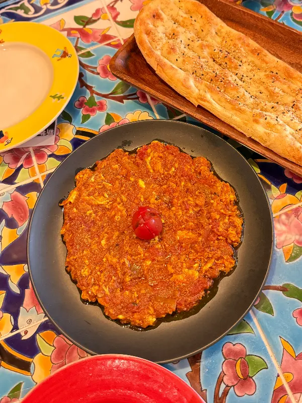 드디어 기다리던 ‘미르자 가세미’가 나왔다. 구운 가지와 토마토, 마늘을 섞어 만든 페르시아 전통 음식이라고 한다. 따뜻한 빵과 함께 제공되었는데, 빵 위에 미르자 가세미를 얹어 먹으니 그 맛이 정말 환상적이었다. 부드러운 가지의 식감과 토마토의 상큼함, 마늘의 풍미가 어우러져 입안 가득 퍼지는 풍미가 일품이었다.