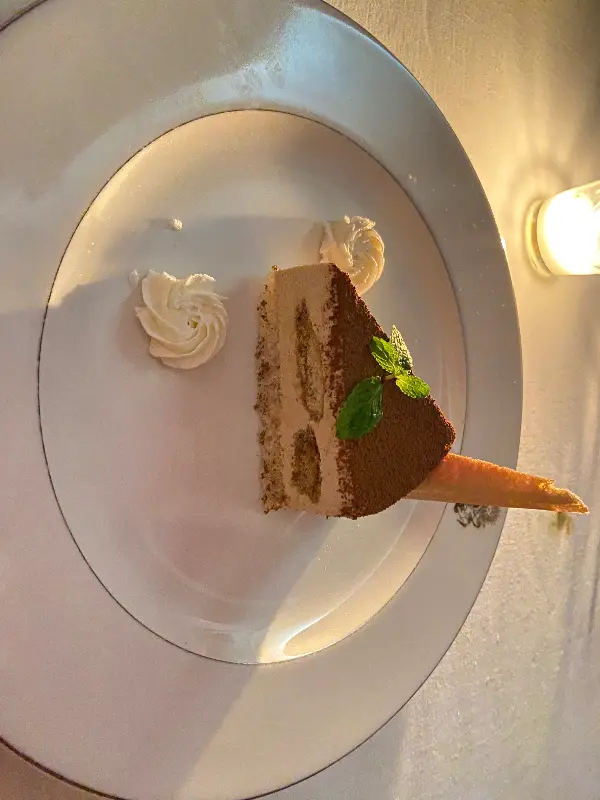 마지막으로 티라미수가 나왔다. 부드러운 마스카포네 치즈와 커피 시럽에 적셔진 스펀지 케이크, 그리고 코코아 파우더의 조화가 훌륭했다. 하지만 아쉽게도 티라미수에는 스펀지 케이크가 사용되어, 개인적으로는 조금 아쉬웠다. 다른 메뉴들이 8/10점이었다면, 티라미수는 7/10점 정도였다.