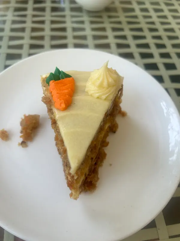 달콤한 당근 케이크 한 조각, 섬세한 장식이 시선을 사로잡습니다.
