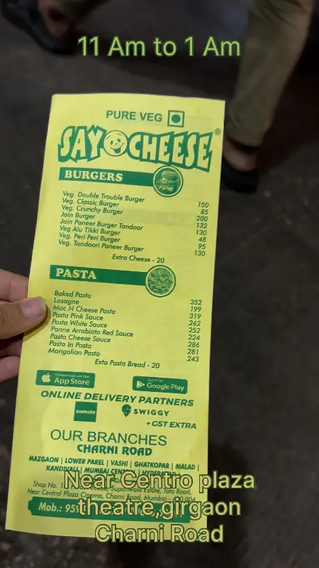 퇴근 후 늦은 밤, 왠지 모르게 허기진 배를 움켜쥐고 뭄바이의 밤거리를 헤매던 지난달, 동료와 함께 우연히 발견한 차르니 로드의 작은 맛집, Say Cheese는 마치 운명처럼 우리를 이끌었습니다. 자정 넘어 새벽 2시까지 영업한다는 사실은 야행성인 우리에게는 한 줄기 빛과 같았죠. 가게 이름처럼, 치즈를 사랑하는 사람이라면 절대 그냥 지나칠 수 없는 곳입니다.