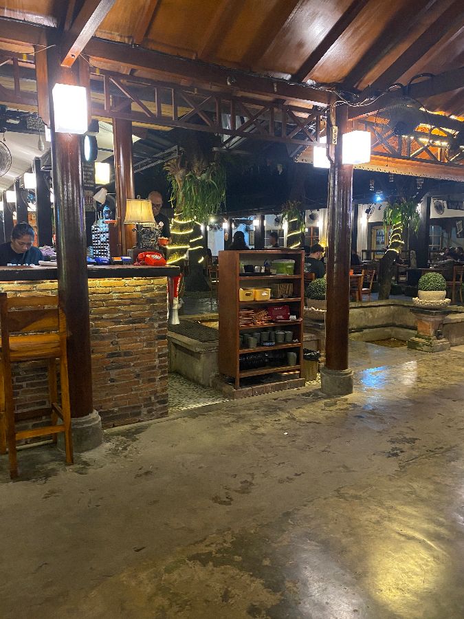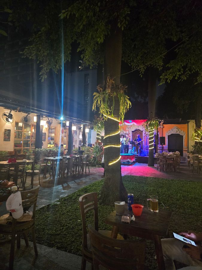 널찍한 홀과 실내 공간은 물론, 넓은 주차장까지 갖추고 있어 접근성 또한 뛰어납니다. 대부분 야외 좌석으로 구성되어 있지만, 갑작스러운 날씨 변화에도 걱정 없이 즐길 수 있는 실내 공간도 마련되어 있습니다. 낮에는 푸른 나무와 연못이 어우러진 싱그러운 정원 같은 분위기에서 여유로운 식사를 즐길 수 있고, 밤이 되면 따뜻한 조명과 라이브 음악이 더해져 한층 더 로맨틱하고 활기찬 공간으로 변모합니다.