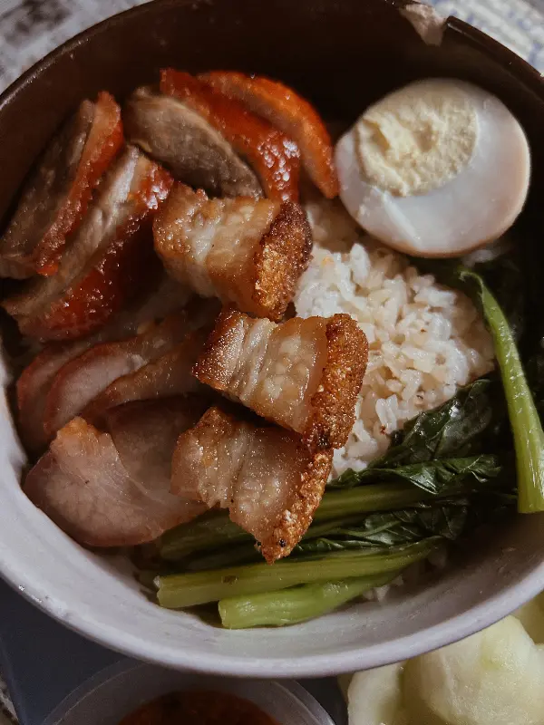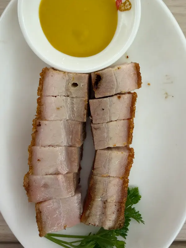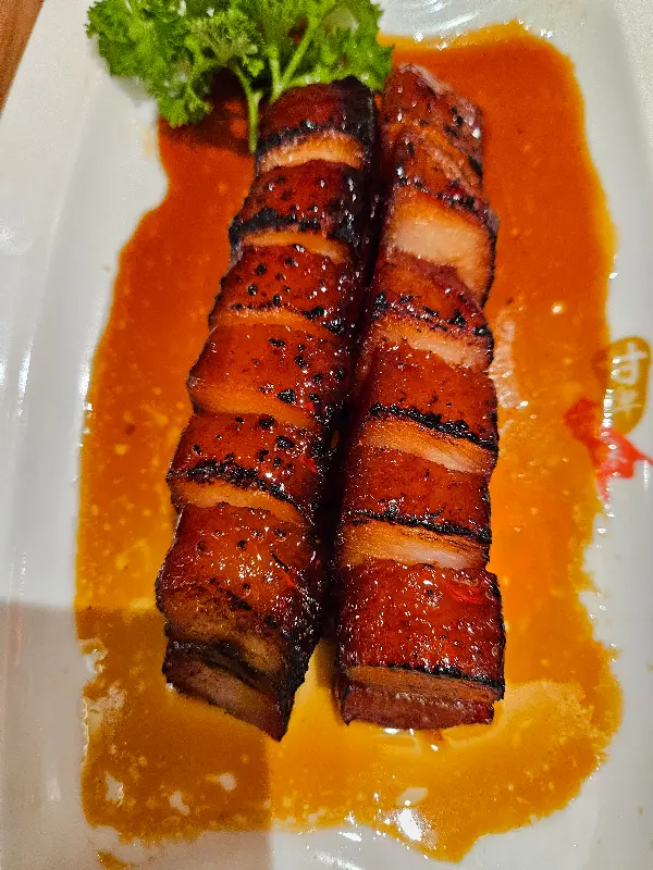 구운 돼지고기와 오리고기가 들어간 볶음밥은 푸짐한 양과 다양한 소스로 고객들의 사랑을 받고 있습니다. 매콤한 고추장, 달콤한 탕수육 소스, 고소한 땅콩 소스 등 취향에 따라 소스를 선택하여 볶음밥을 즐길 수 있으며, 녹색 채소와 삶은 계란이 함께 제공되어 영양 균형까지 고려한 완벽한 한 끼 식사를 완성합니다. 고기는 부드럽고 기름기가 많아 풍부한 맛을 선사하며, 두툼한 지방층은 고소한 풍미를 더해줍니다.