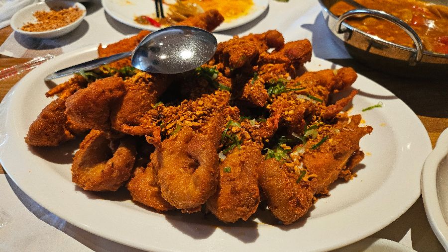 주문한 음식이 하나씩 테이블에 놓이기 시작했습니다. 블랙페퍼크랩은 강렬한 후추 향과 부드러운 게살의 조화가 환상적이었습니다. 쭈미바까르는 쫄깃한 쭈꾸미와 매콤한 양념이 어우러져 입맛을 돋우었고, 구라미고렝은 바삭한 겉과 촉촉한 속살이 완벽한 조화를 이루었습니다. 양도 푸짐해서 더욱 만족스러웠습니다.
