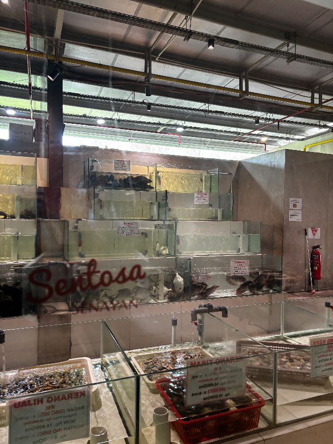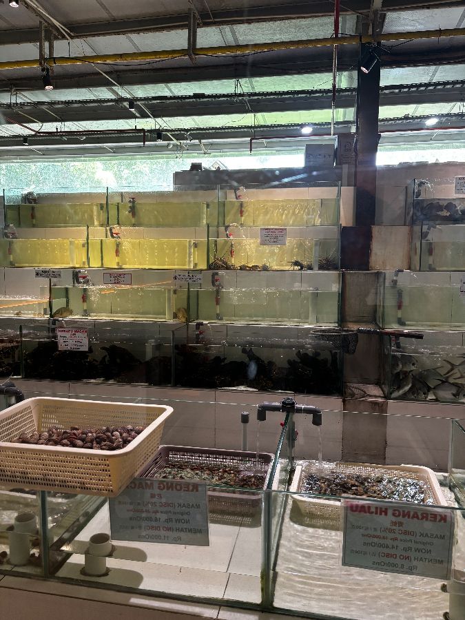 레스토랑에 들어서자, 가장 먼저 눈에 띈 것은 커다란 수족관이었습니다. 그 안에는 싱싱한 활어와 해산물들이 가득했습니다. “라이브 씨푸드 자카르타에서 여기가 제 기준 원탑”이라는 리뷰처럼, 신선함이 느껴지는 해산물들은 저의 기대감을 한껏 끌어올렸습니다.