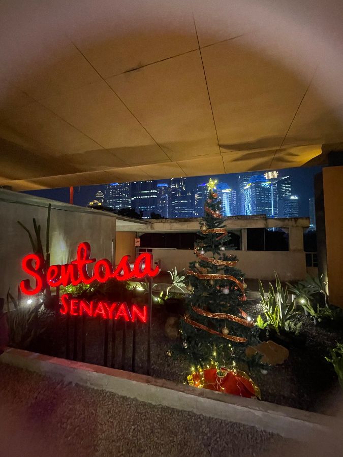 퇴근 후, 꽉 막힌 자카르타의 도로를 뚫고 도착한 레스토 센토사 세나얀. 도심 속에서 만나는 싱싱한 해산물 요리와 아름다운 야경은 지친 하루를 잊게 해주는 마법 같은 힘을 지니고 있었습니다. 입구에서부터 빛나는 “Sentosa Senayan” 네온사인과 크리스마스 장식이 어우러져 설렘을 더했습니다. 오늘, 이곳에서 특별한 미식 경험을 시작하려 합니다.